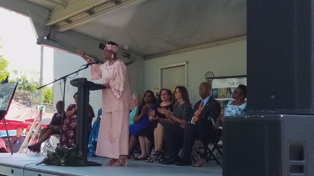 “Today we remember every sacred soul …” who suffered from the trade and slavery, he piously declared, before morphing into a nationalist rant in which he blared to the world that “America always gets the job done, America always wins!”