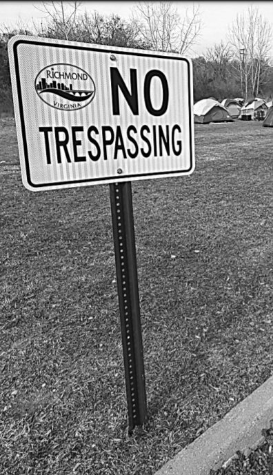 This is one of several “No Trespassing” signs the City of Richmond has erected at Cathy’s Camp. The property is actually owned by Virginia Commonwealth University, a state institution.