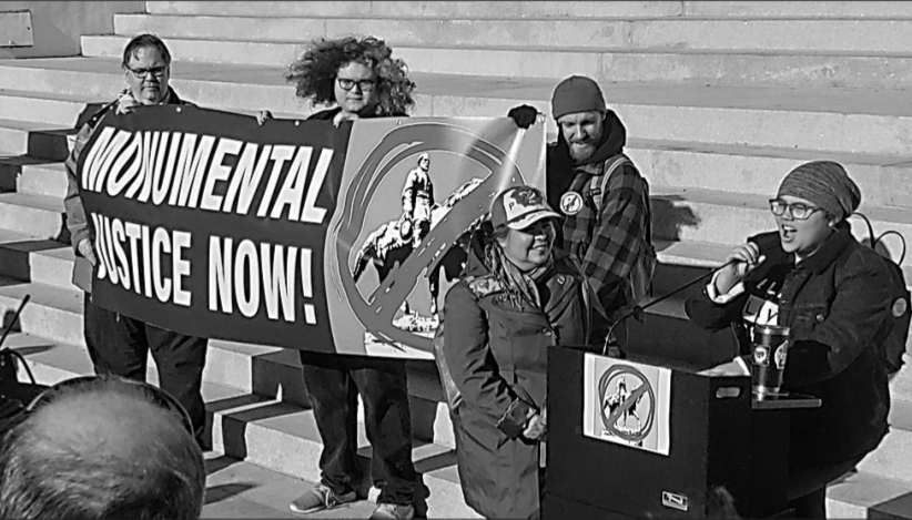 More than 175 people rally Jan. 8 on the steps of the State Capitol to support legislation that would allow local governments to take down “war memorials,” including those honoring slavery-defending Confederate figures. The rally was sponsored by Monumental Justice Virginia, a statewide coalition that includes the Defenders.