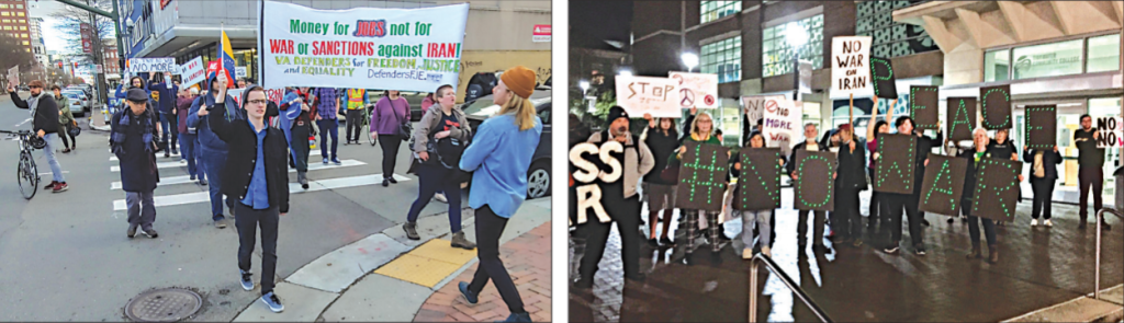 In Richmond, more than 50 people turned out to demand “No War on Iran,” “Stop the Endless Wars” and “Money for Jobs, Education & People’s Needs, not War!” Starting with a rally outside the federal courthouse on East Broad Street, the overwhelmingly young crowd marched a mile to Monroe Park, a traditional site of protests, where an open-mic Speak-Out was held.