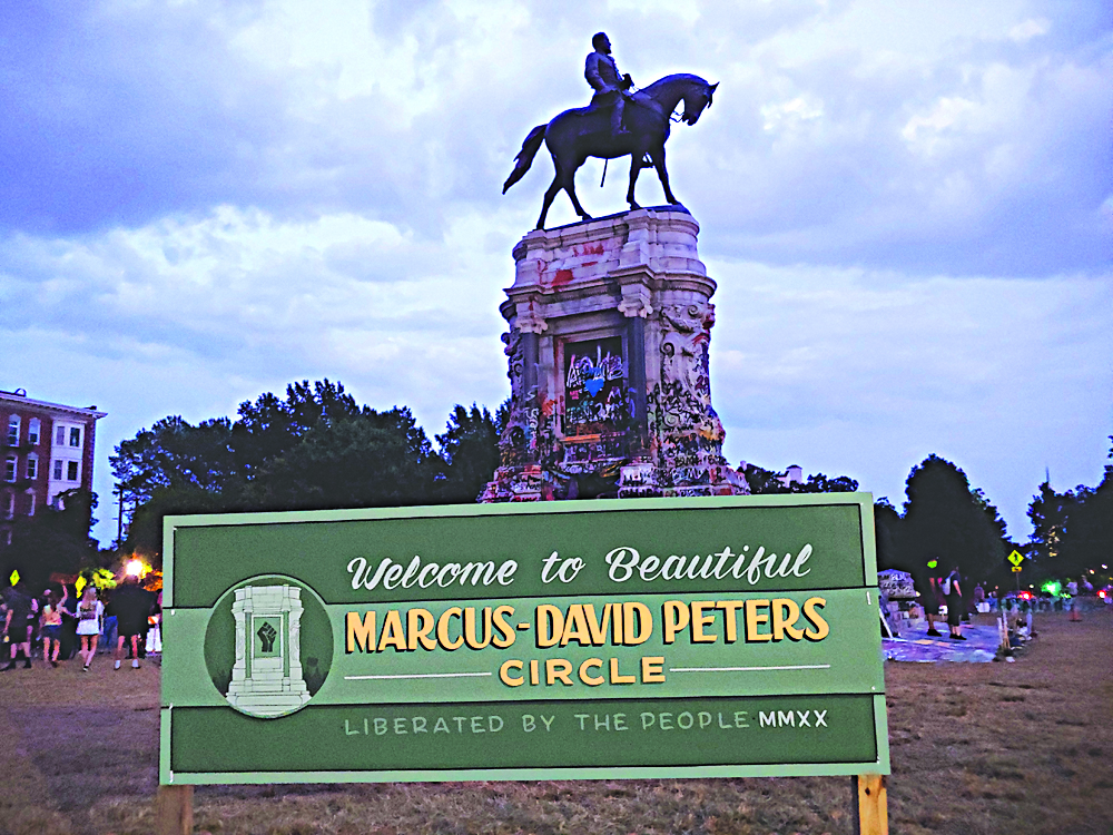 The grassy circle around the Lee statue is owned by the state, so technically it comes under the capitol or state police.