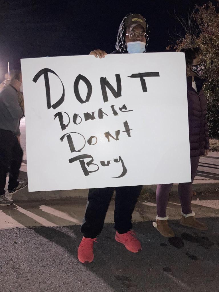 “Don’t Donate, Don’t Buy,” read one sign, held by Diversity donation sorter Daniel Goodson.