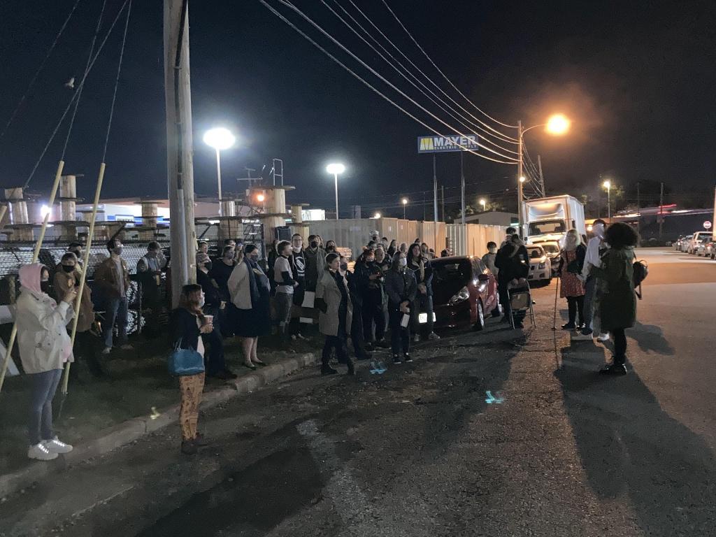 At 10:50 p.m., the crowd outside was down to 13 people, jangling keys and cheering wordlessly every few minutes to try to keep an auditory presence while getting close to the six-hour mark.