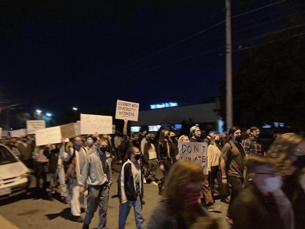 The striking workers were greeted as returning champions, with supporters handing them water bottles and granola bars. Standing in the loose cluster of the remaining crowd, Stump reported that the executive committee planned to take their demands before the entire executive board in a private meeting on Nov. 10. In the meantime, the workers were guaranteed a number of concessions. Stump read them off into the revived megaphone: