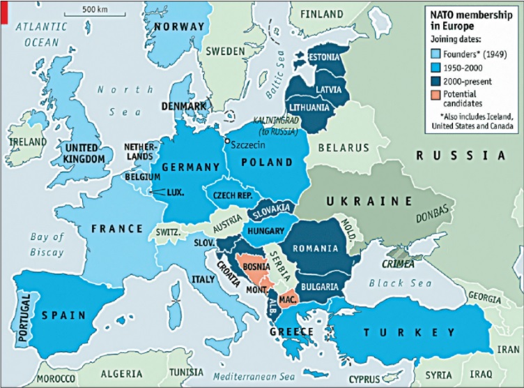 All new members admitted into NATO since the collapse of the Soviet Union are in Central or Eastern Europe. From a North American and Western European alliance, it has become a North American and European force that has moved steadily eastward right up to Russia’s borders.
