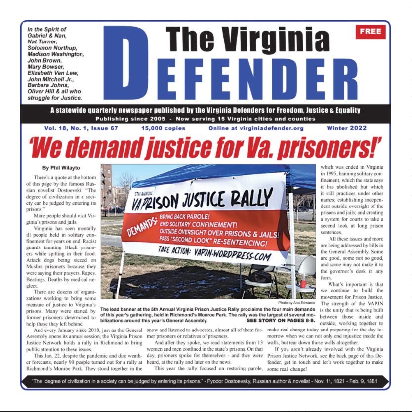 The Winter 2022 edition of The Virginia Defender was published on February 3rd, 2022. Click here for the full PDF.