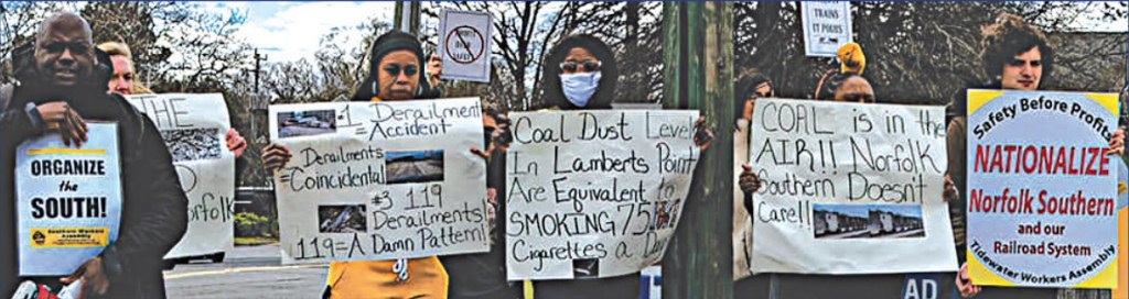 On March 11, members of the Tidewater Workers Assembly, a chapter of the Southern Workers Assembly, staged a protest outside the Lamberts Point coal yards in Norfolk to call out Norfolk Southern for what it called its dangerous practices. It was part of a national day of solidarity with railroad workers.