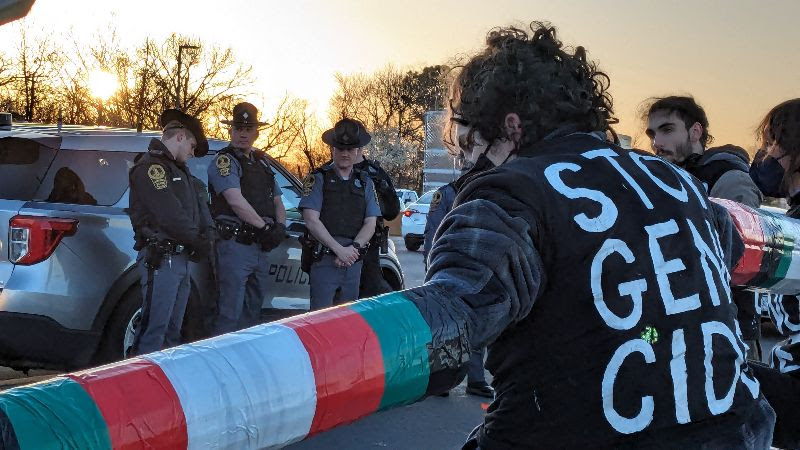 RICHMOND, VA, June 21 — A multi-racial group of nine young people arrested March 11 for blocking Interstate 95 in Richmond to draw attention to the genocide in Gaza went on trial today in Richmond General Court, charged with four Class One misdemeanors that could bring them jail time, plus fines.