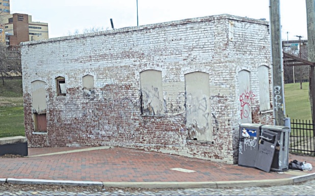 Built in 1932–33 for the Barnes Coal Company, the building was then used by the Reams Coal Company. Records don’t indicate the building’s uses between 1960 and 1992, when the sandwich shop opened. A fire shut that business down within a year and it has stood vacant, tagged and littered with trash ever since.