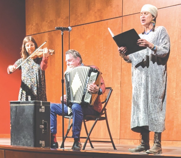 Jarene Fleming sang two Yiddish songs, “Mayn Rue Platz“ and “Zog nit Keynmol.” The first tells of sorrow, while the second is about the Warsaw Ghetto Uprising, which has sharp parallels with the genocide now being committed in Gaza.